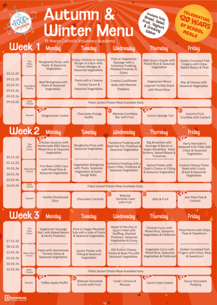 Our school meals are cooked by our amazing Catering Team, providing your child with a variety of food choices.